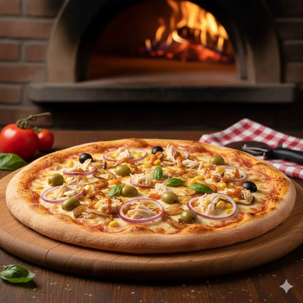 Sabor intenso y lleno de carácter. Mozzarella, morrones salteados, carne picada, cebolla, palta y choclo.
